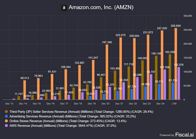 Advertising is the fastest growing business withing Amazon. We have not seen data on the segment’s operating margins but they are likely to be high.