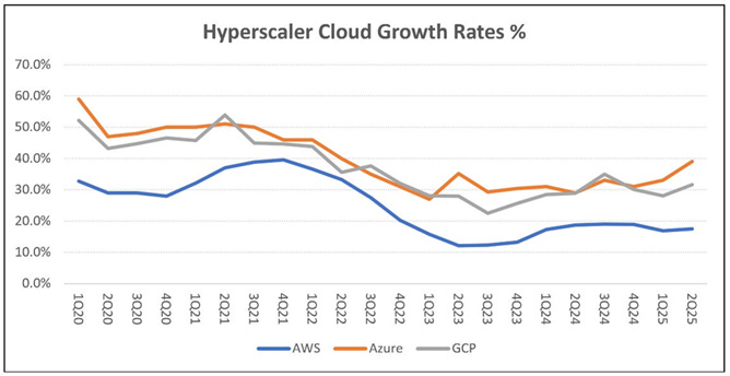 As noted above, the explosive growth in AI LLM -driven demand has favoured Microsoft and Google more than Amazon. The latter continues to have significant strengths and the whole industry faces a huge demand/supply imbalance which will only be resolved in the medium term.