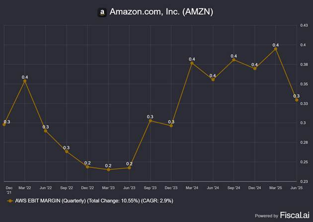 The market was surprised by the decline in AWS operating margins in Q2 2025. A slowdown in sales and a decline in margins in the most profitable business segment was a source of significant concern.