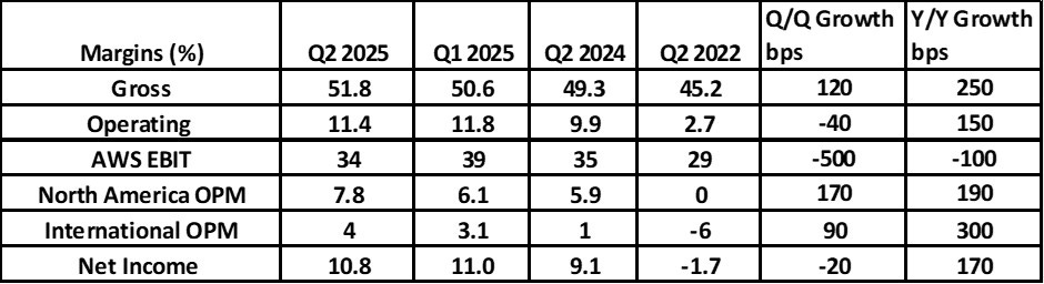 AWS grew more than expected in Q2 2025 but AWS margins decline. The company explained it as follows.