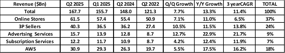 This was a good set of results but the markets responded negatively to the AWS numbers. Although AWS revenues were above guidance, growth was much less compared to their major competitors. AWS generated revenue of $30.9bn, up 16.1% (y/y). Microsoft Azure generated roughly $21bn in revenue, up 39% Y/Y. Google Cloud generated $13.6bn in revenue, up 32% Y/Y.