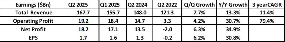 Total revenue was $167.7bn, a 13.3% increase (y/y) or 12% on a currency adjusted basis