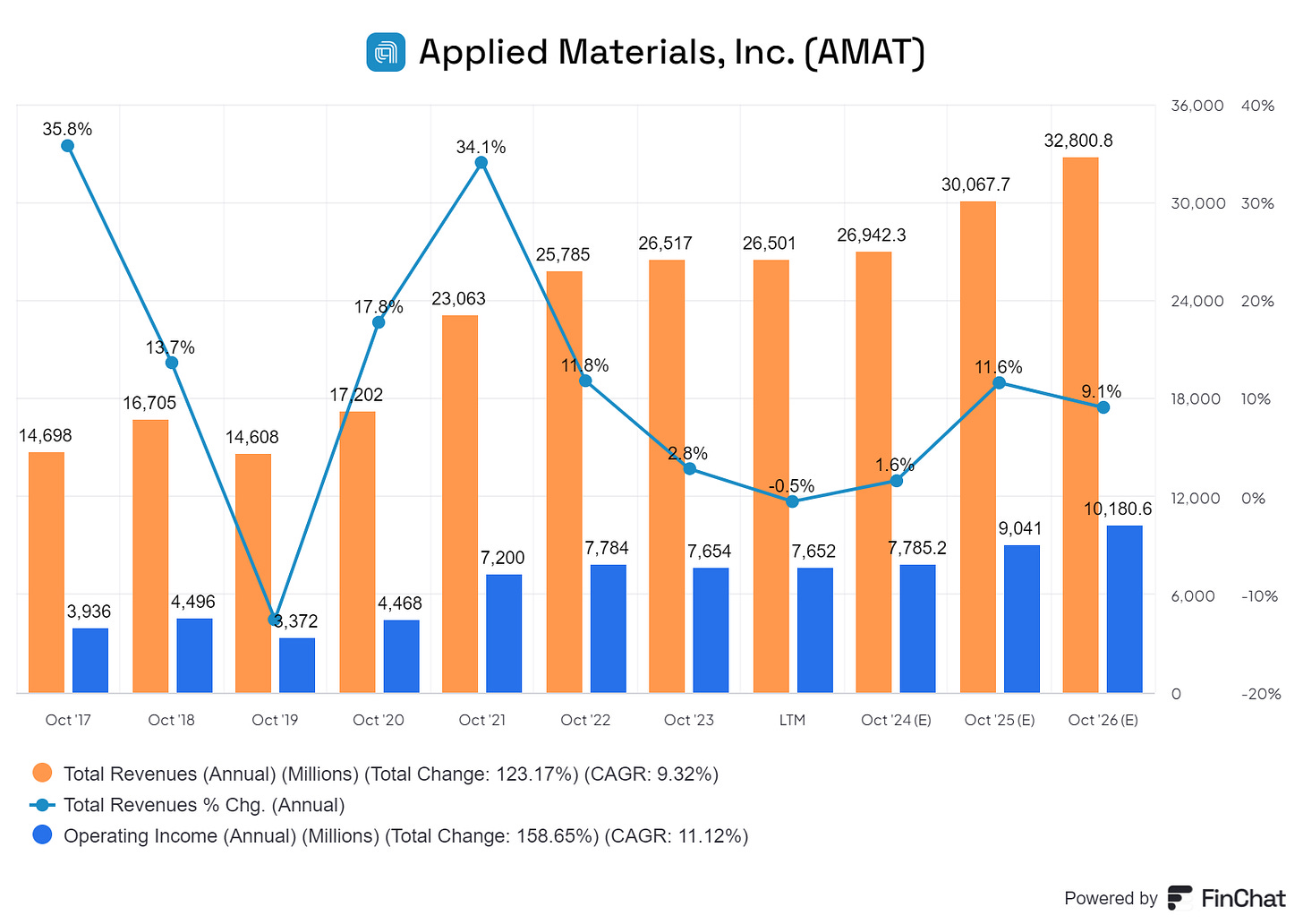 More broadly, in recent years, AMAT has identified the growth of data and emerging end-market drivers such as artificial intelligence, the Internet of Things (IOT), 5G networks, smart vehicles and augmented and virtual reality are also creating the next wave of growth for the industry.