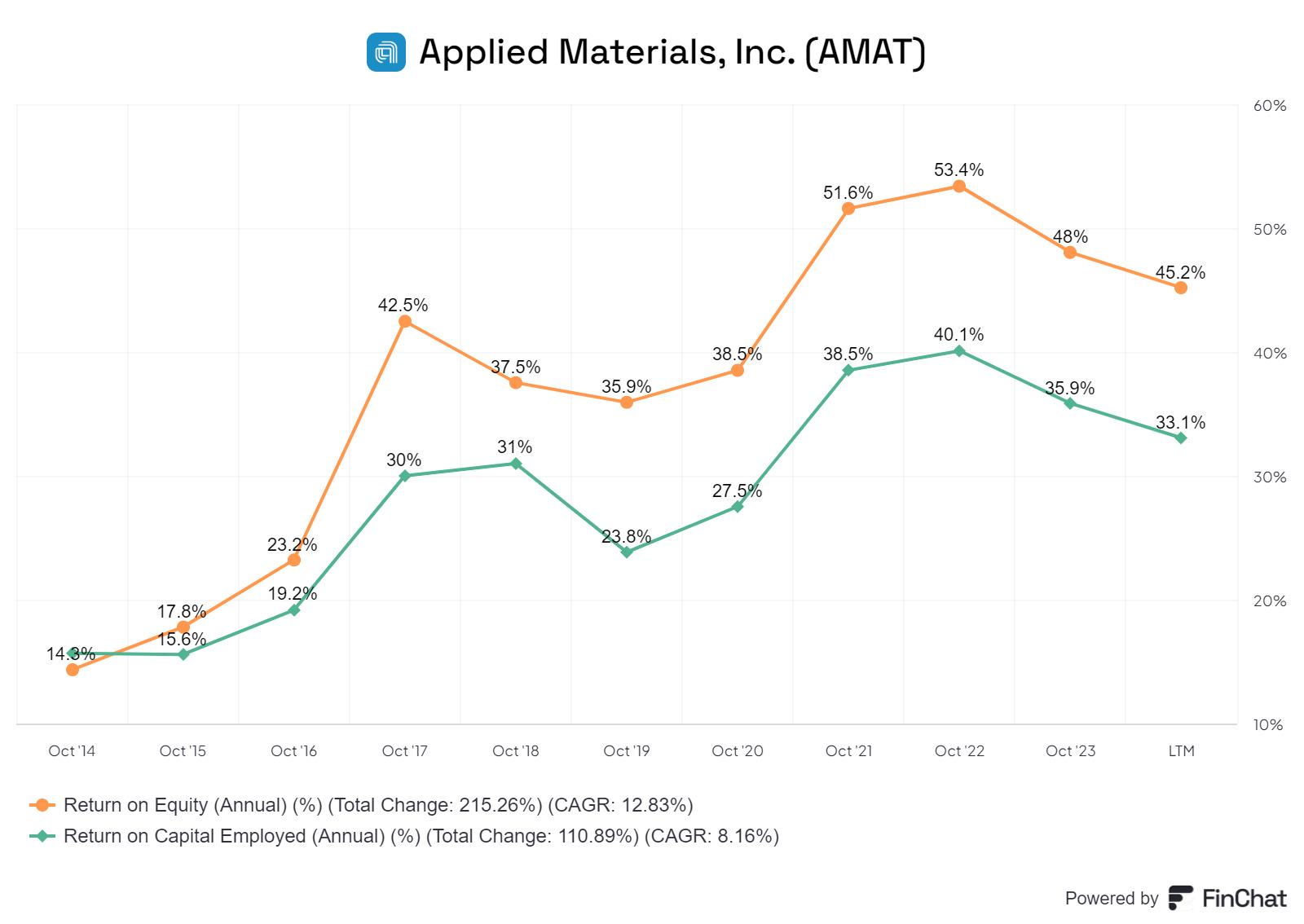 The company is quite profitable with an RoE of about 45.3% currently and RoCE of 33.1%.