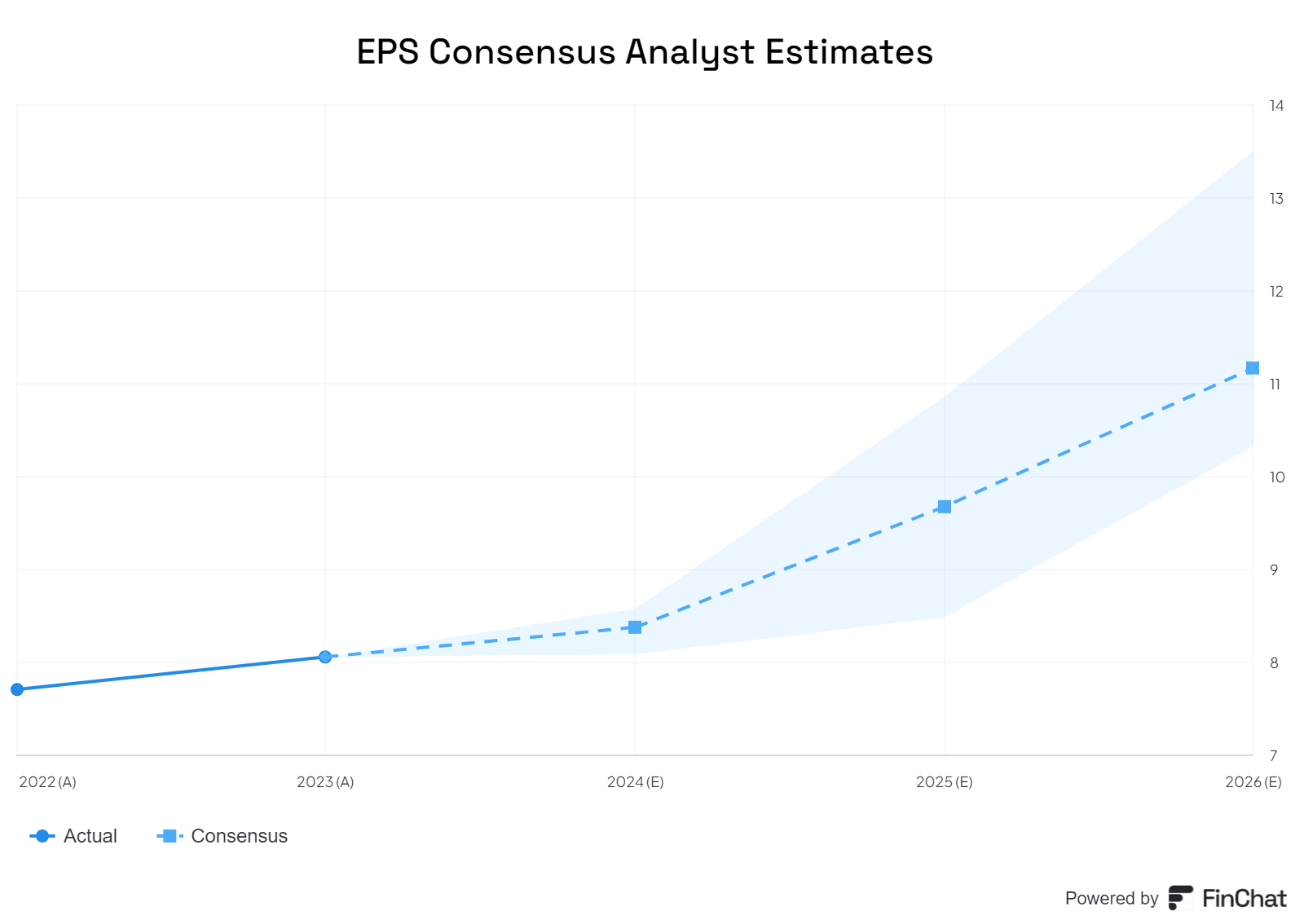 FY 2026 consensus EPS is $ 11.2. At the current share price of $ 248 this implies a simple forward PE multiple of 22.2X. This not too hig,h especially if one considers the high profitability of the company -RoE is 45%.