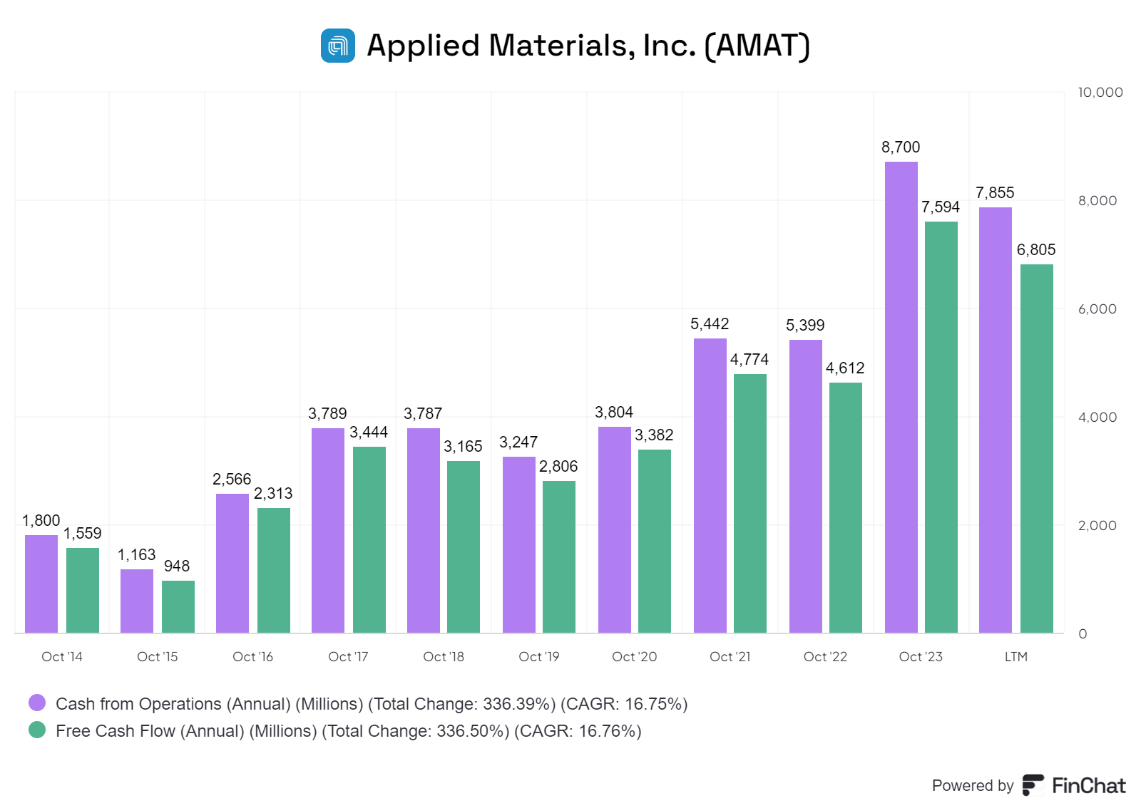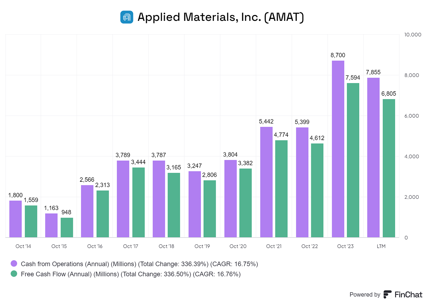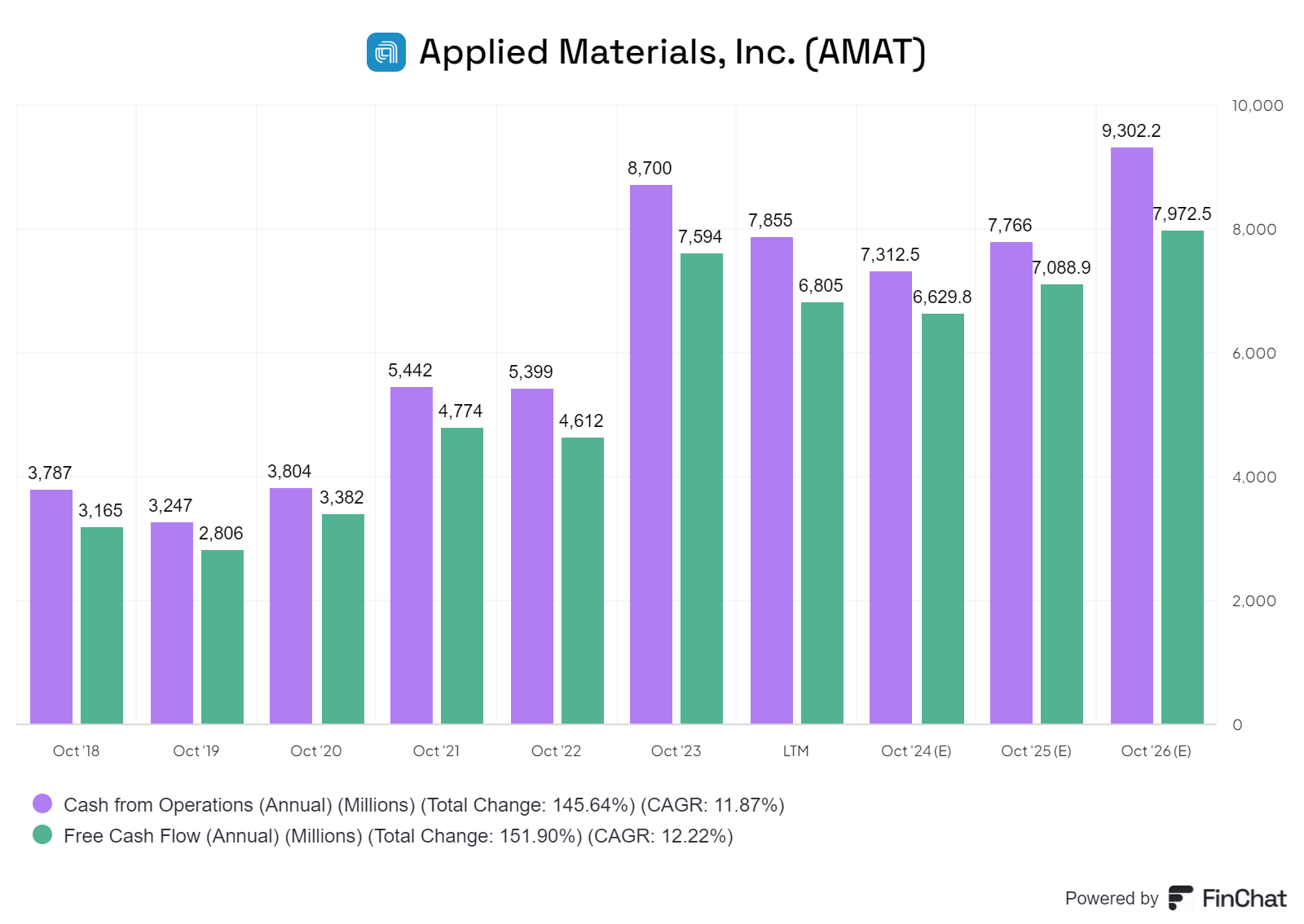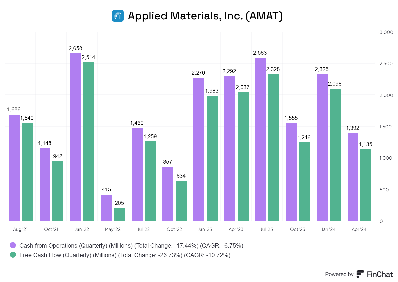 Turning to cash flows, in Q2, AMAT generated $1.39bn in operating cash flow and $1.14bn in free cash flow.