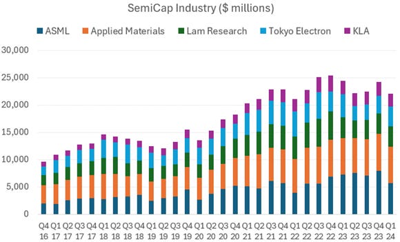 After Covid-19 and the WFH-driven boom of 2020-2022, the semiconductor capital (semicap) equipment industry saw a cyclical correction. However, semicap shares have been rallying over the last six months in anticipation of a new round of strong orders.