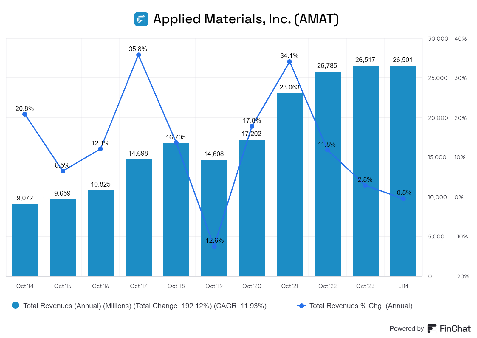 In the last two years, the US government announced additional export regulations for semiconductor technology sold to China. This had a negative impact on AMAT sales as China accounted for 28% of sales in 2022 and 2023 down from 33% in 2021.