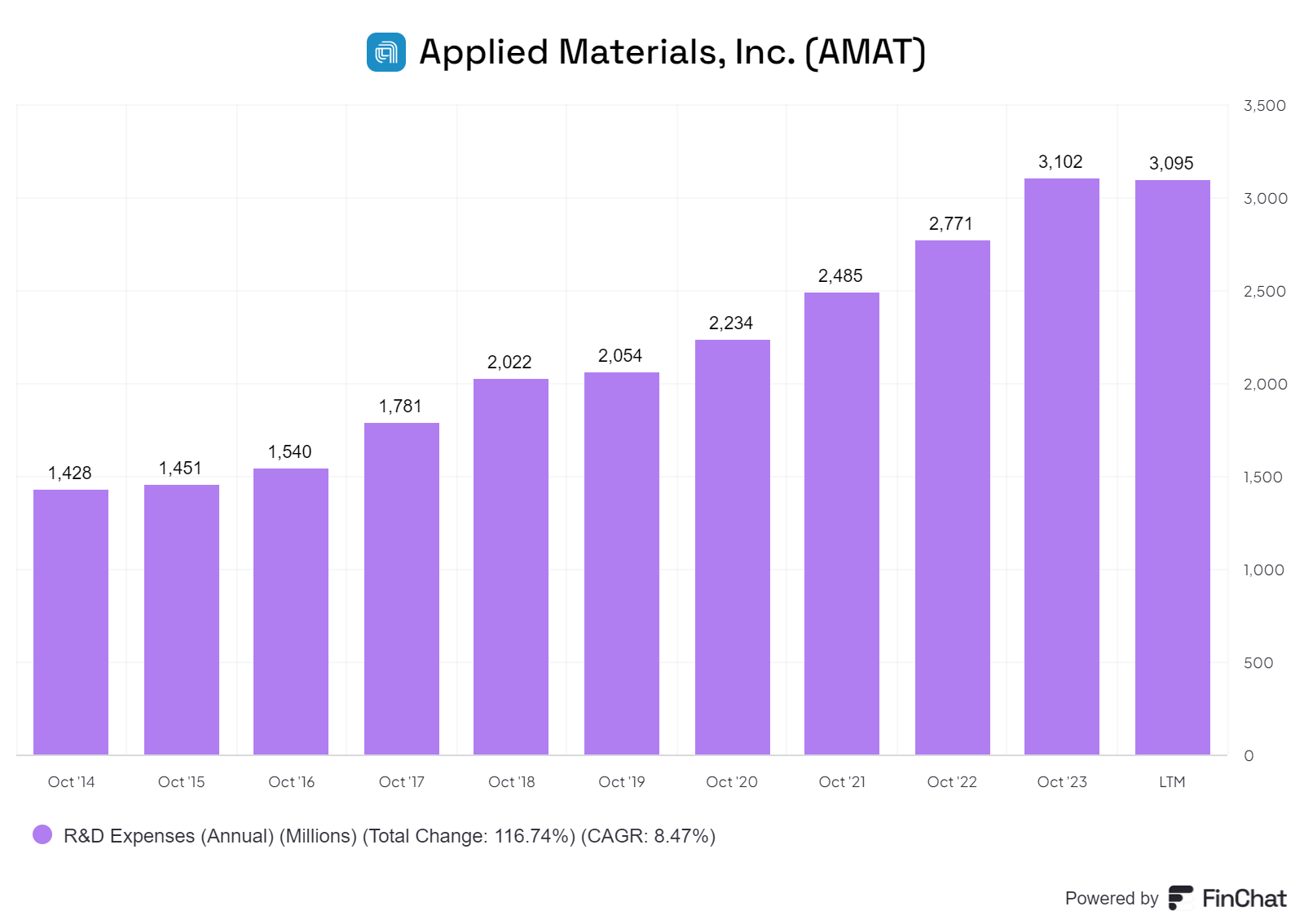 These amounts may be small compared with capital expenditure by Intel, Meta Platforms and so on but AMAT is focused in a very narrow area, which they dominate.