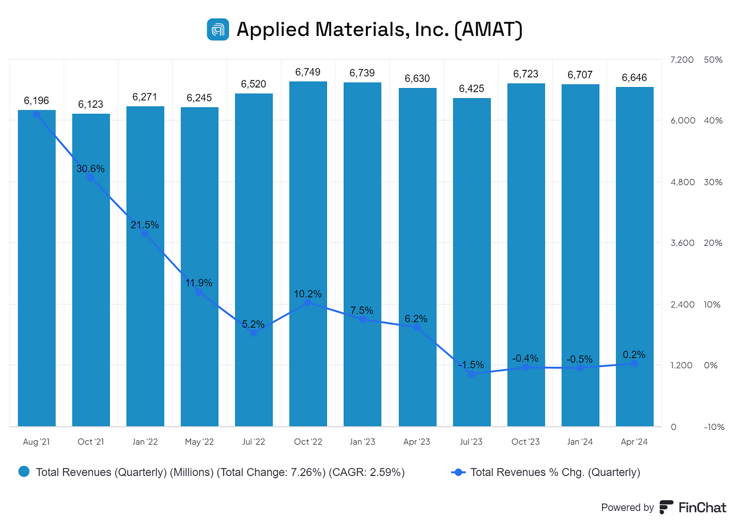 “With Q2 revenue and earnings towards the high-end of our guided range, AMAT continues to deliver strong performance in 2024.”