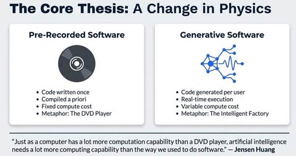 Generative software requires up to 1000X more compute load than traditional pre-recorded software according to Nvidia.