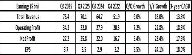 Total revenues grew by 18% (y/y) to $76.4bn.