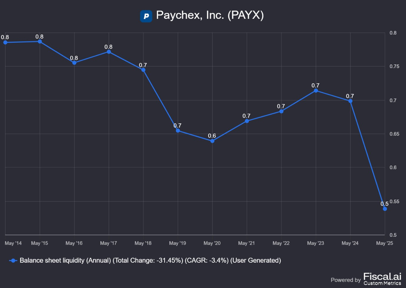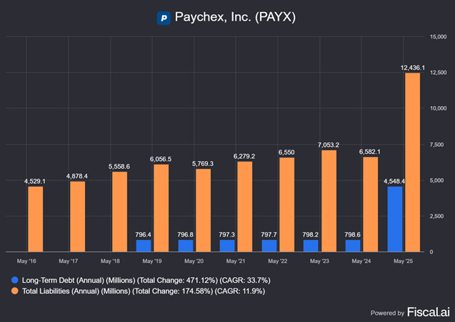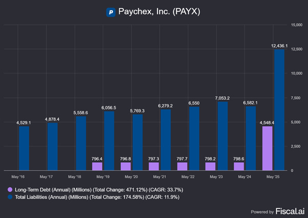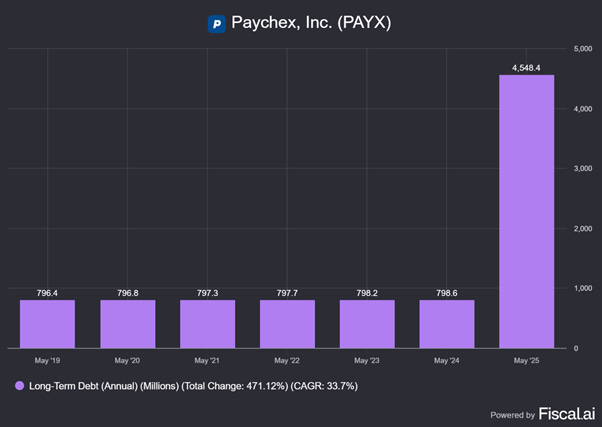 However, this is only a partial explanation as PAYX did not have too much debt until the most recent quarter.