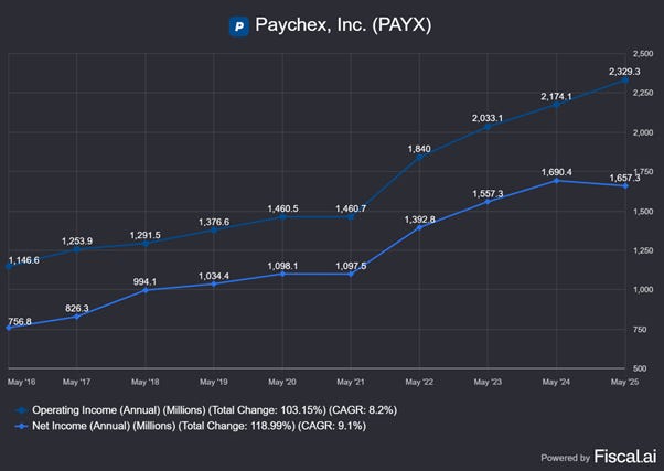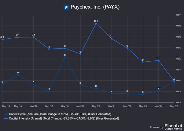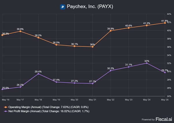 Exceptional deep-dive into Paychex! Your analysis of the PEO/HCM industry dynamics is incredibly thorough. While you focus on Paychex and ADP as the top two players, it's worth noting that Insperity—another significnt PEO competitor—is facing many of the same headwinds you identified. Your points about recession risk, the need for acquisitions (Paychex/Paycor), and moderate growth challenges resonate strongly with Insperity's current situation. They're experiencing modest worksite employee growth and profitability pressures in 2025, which suggests the industry consolidation you describe is creating real competitive stress beyond just the top two players. Your observation that ROIC (16.3%) is a better predictor of long-term returns than ROE (41%) is particularly insightful for evaluating PEO companies where 'float' can artificially inflate ROE. Insperity's working toward 2026 improvement, but your DCF framework shows how challenging it is to justify premium valuations in this mature, single-digit organic growth industry.