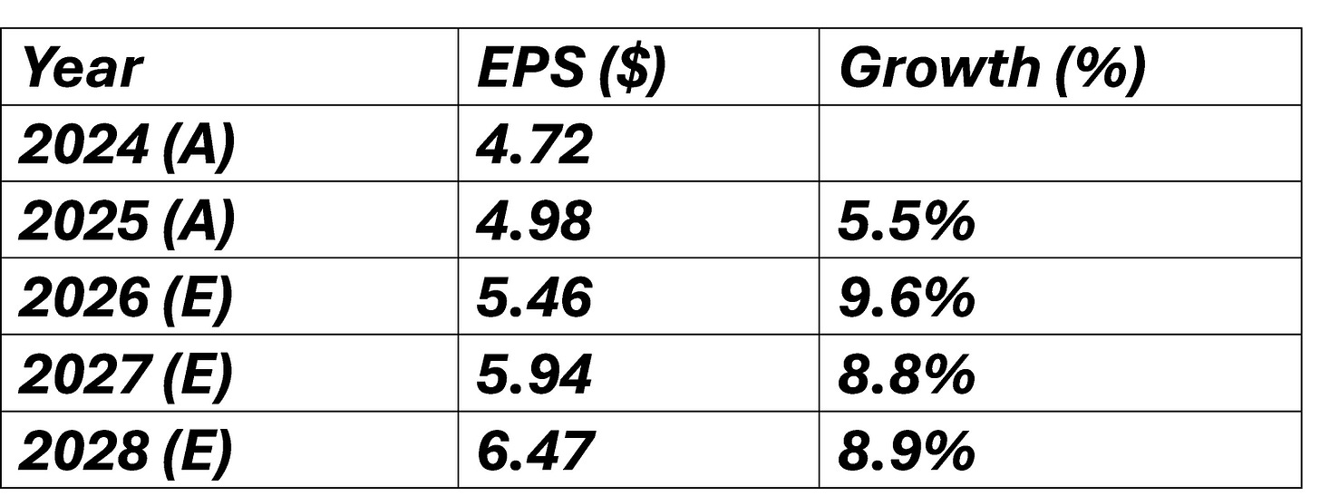 For FY 2025, they achieved 6% revenue growth and 6% growth in diluted earnings per share.