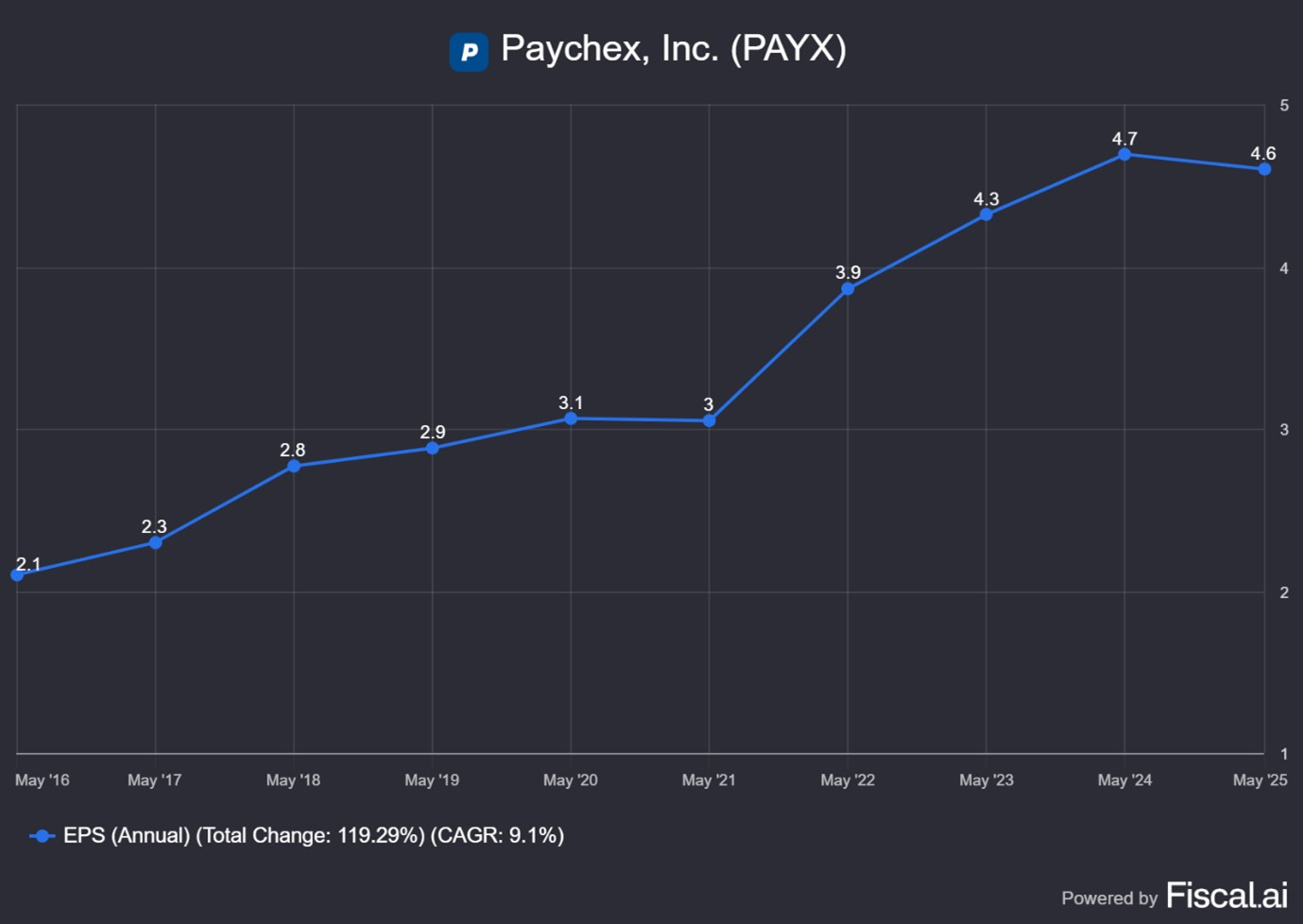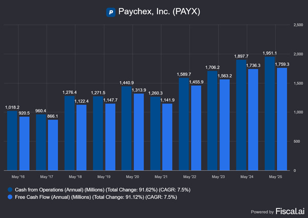 In the last five years, the PAYX stock has given a total CAGR return of 15.7% CAGR.