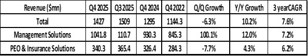 Management solutions grew 12% (y/y) which was much faster than the growth in PEO and Insurance solutions.