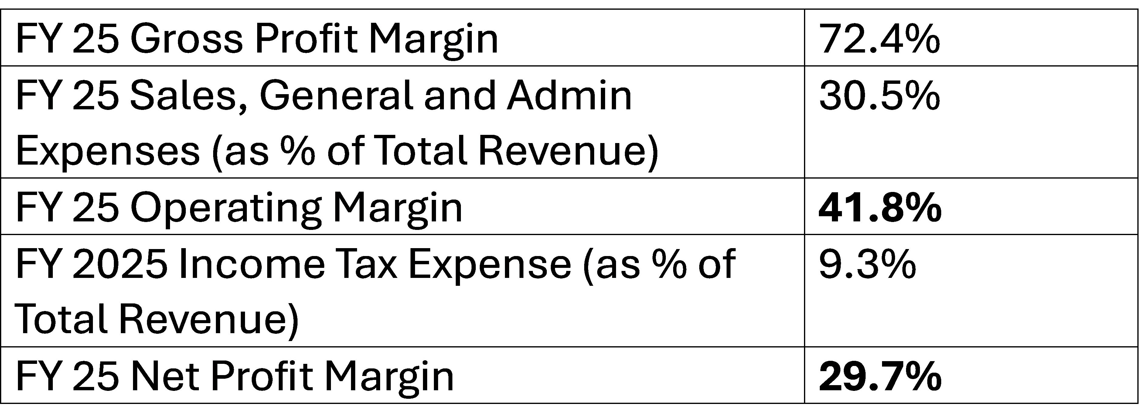 There has been a slight increase in both Operating and Net Profit Margin in the last decade. These stand at 41.8% and 29.7% respectively.