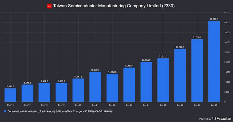 As the chart above shows, deprecation is expected to double to $41bn by 2028.